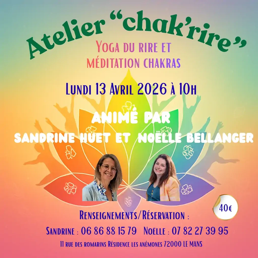 Mon objectif est d'organiser des séances de Yoga du Rire dans toute la Sarthe (72), les départements limitrophes et plus globalement partout en France, en me déplaçant de lieu en lieu, afin d'aider les gens à réveiller la joie qui sommeille en chacun. Le rire est un langage universel qui a le pouvoir de nous connecter les uns aux autres et d'apporter de nombreux bienfaits pour notre santé mentale et physique.